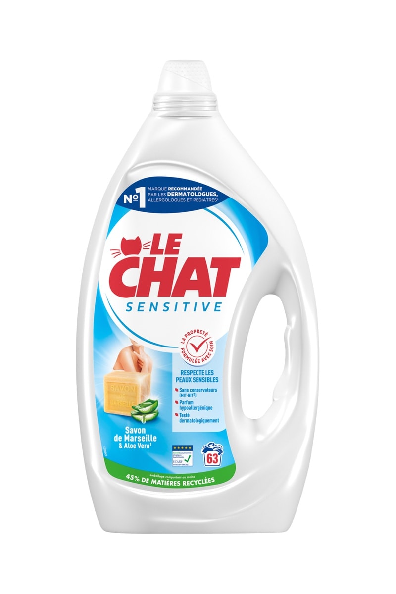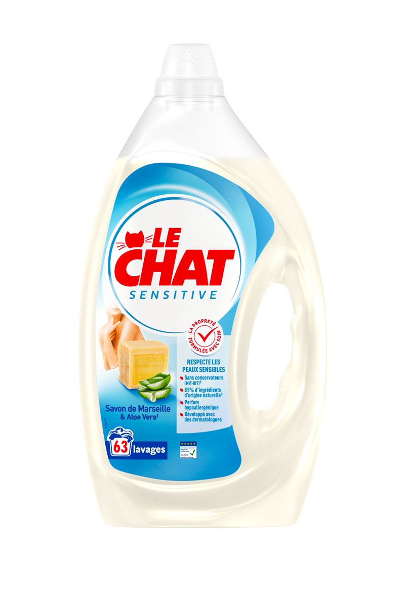 Lessive Sensitive Savon de Marseille et Aloe Vera Le Chat - 63 lavages - 2,835 l