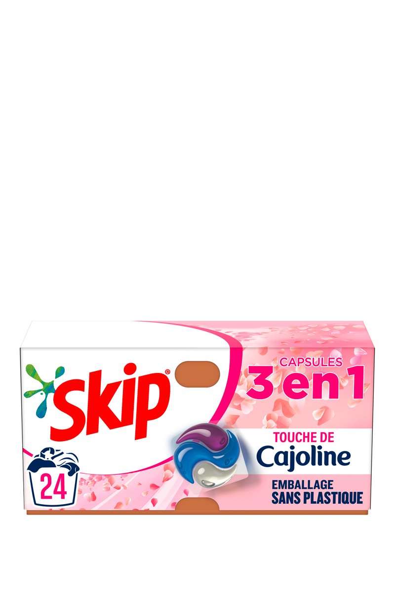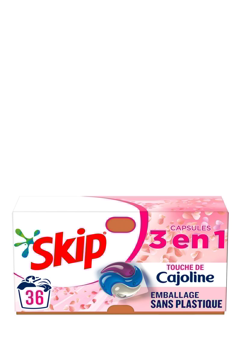 36 doses de lessive 3-en-1 Skip Touche de Cajoline.