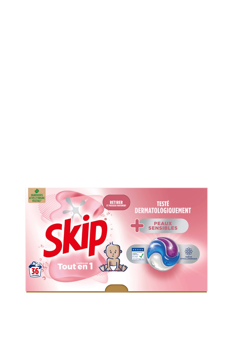 Lessive capsules Tout-en-1 Skip Peaux Sensibles - 36 lavages