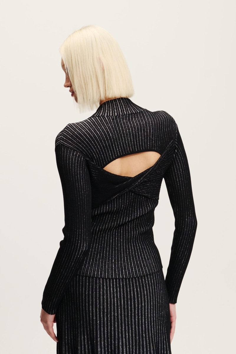 Découpe et effet noué au dos.