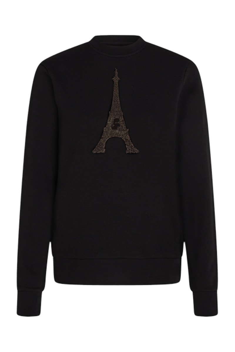 Motif tour Eiffel à strass devant.