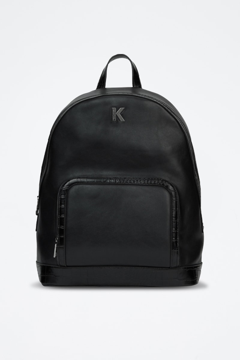 Poche zippée, empiècement effet croco et logo métallique devant.