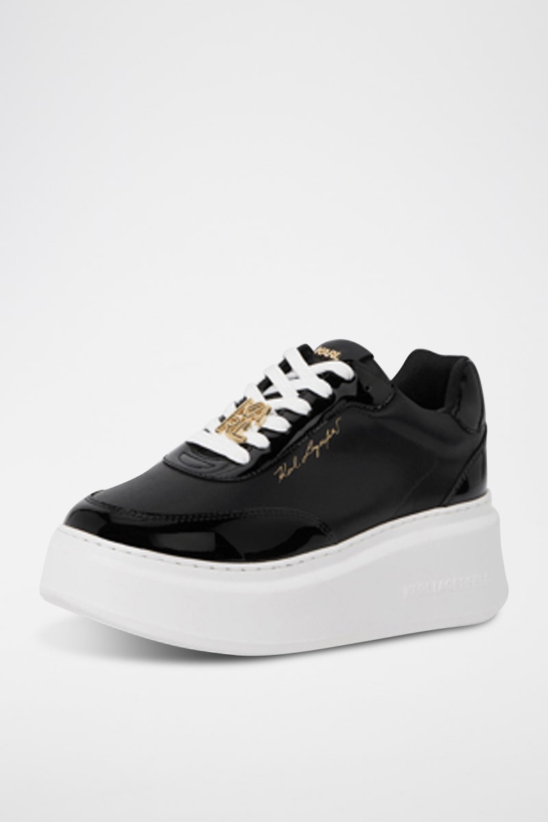 Baskets plateformes en cuir - Noir et doré