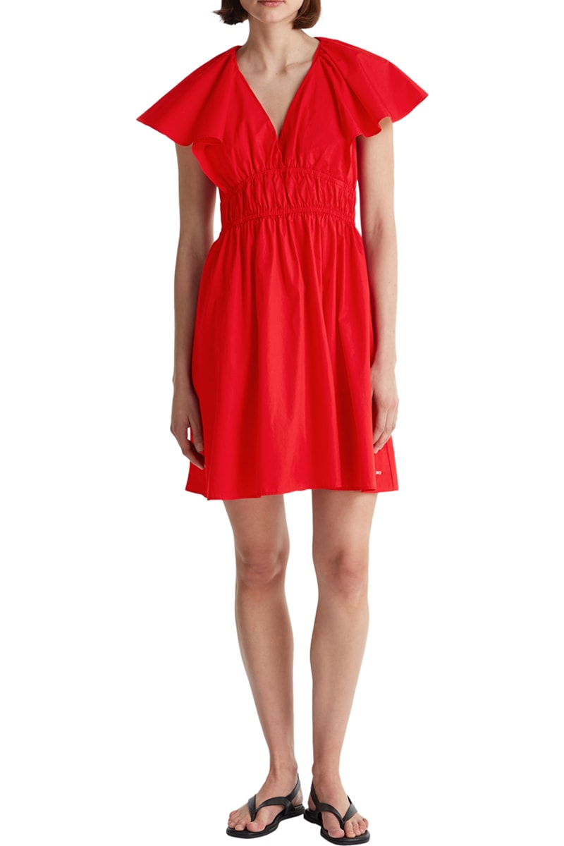 Fronces devant, au dos et sur la jupe. Taille élastique.