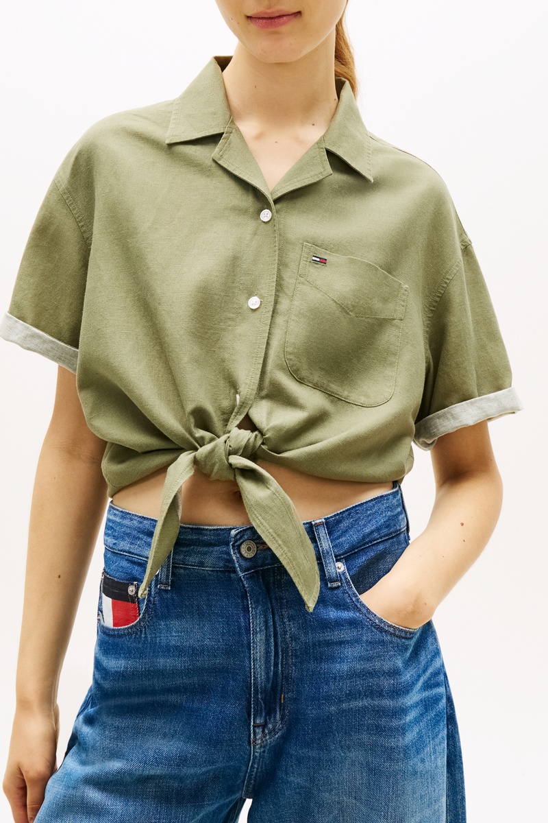 Chemisier relaxed noué en lin - Vert