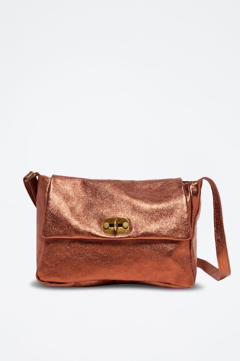 Sac bandoulière en cuir Ana - Argenté et marron