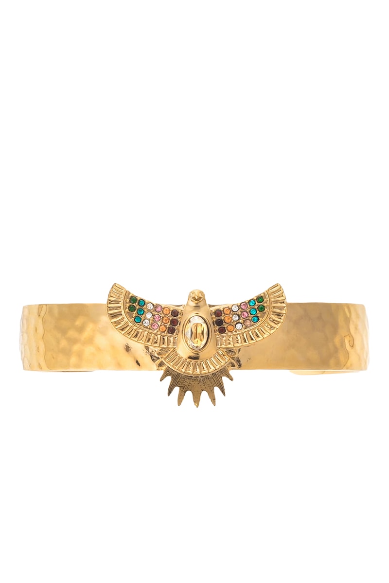 Jonc ouvert doré à l’or fin jaune serti d’un zircon et de cristaux.