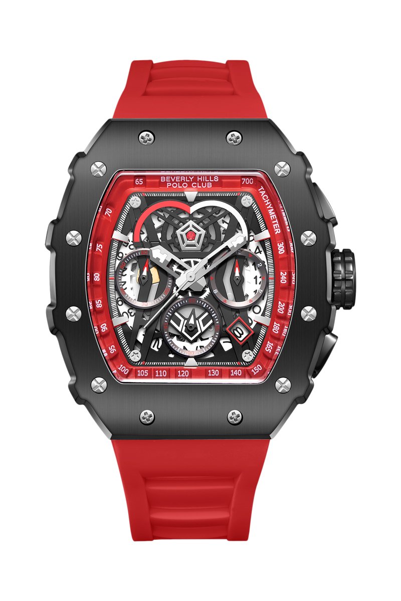 Montre à quartz en silicone - Tachymètre - Rouge et noir