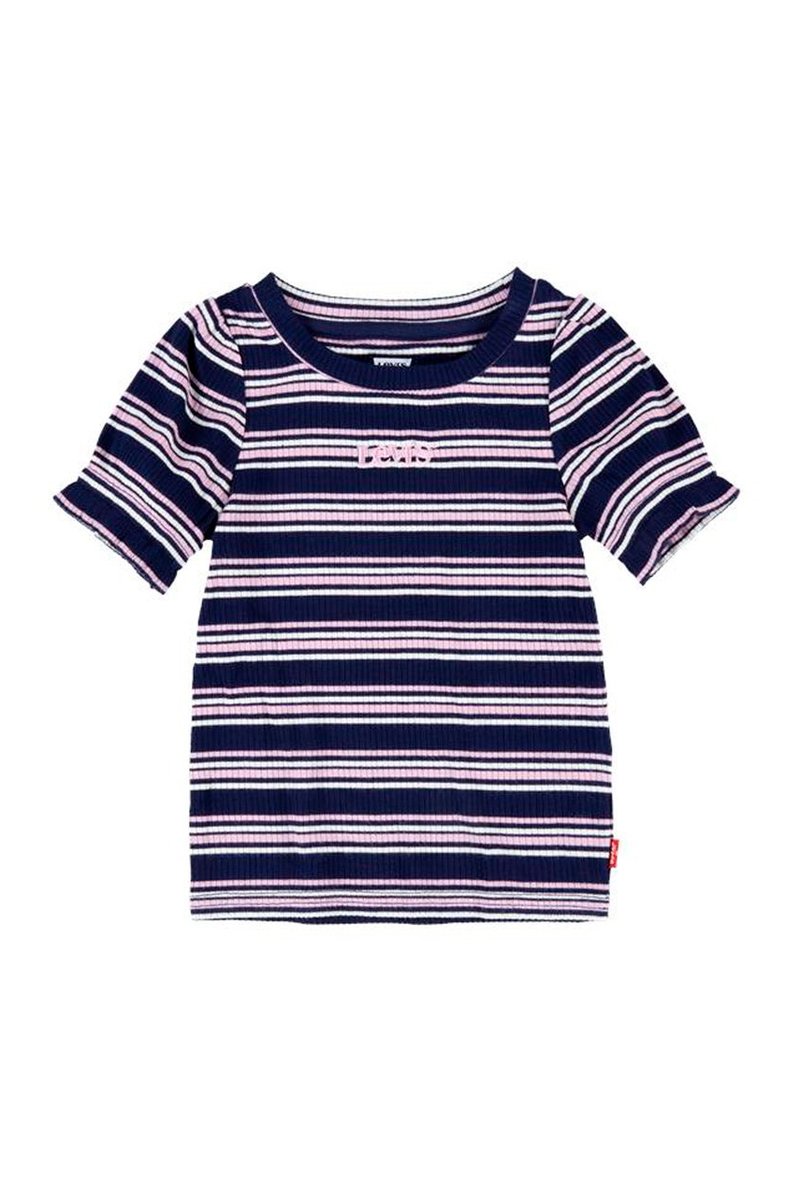T-shirt côtelé doux et extensible avec rayures sur tout le corps dans un style classique des années 90 Manches froncées avec ourlet smocké Logo vintage moderne.