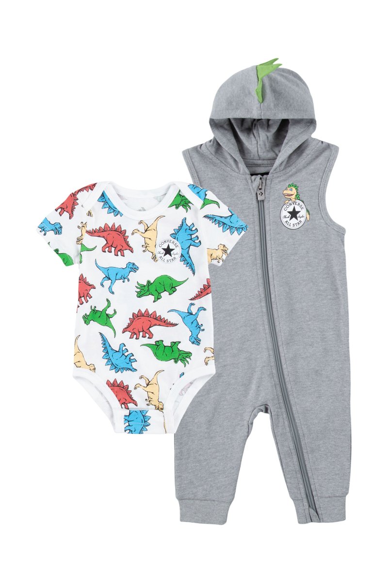Body et combinaison à capuche - Blanc et gris clair chiné