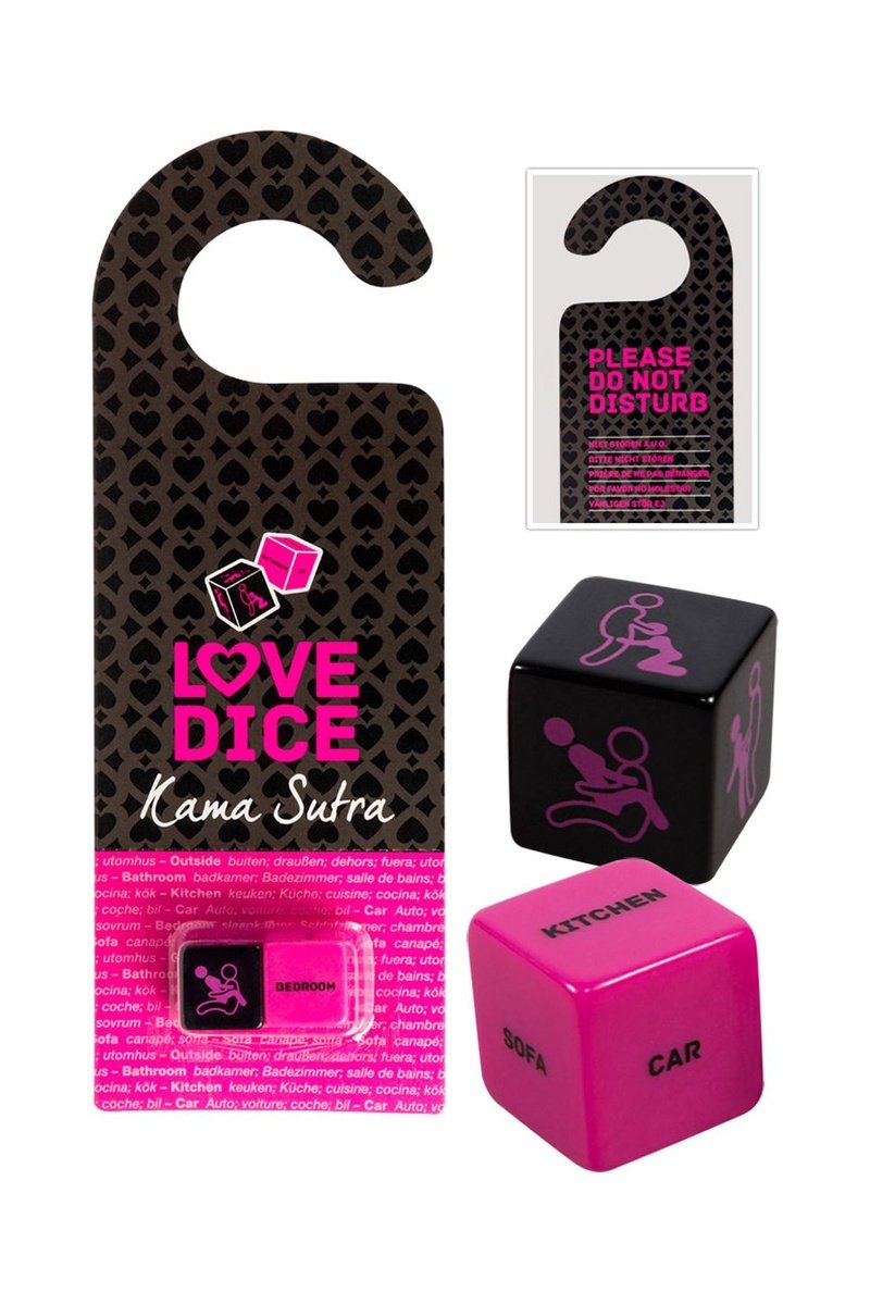 Ce jeu se compose de deux dés : l’un indique une position du Kama Sutra à réaliser, l’autre suggère un lieu pour l’activité.