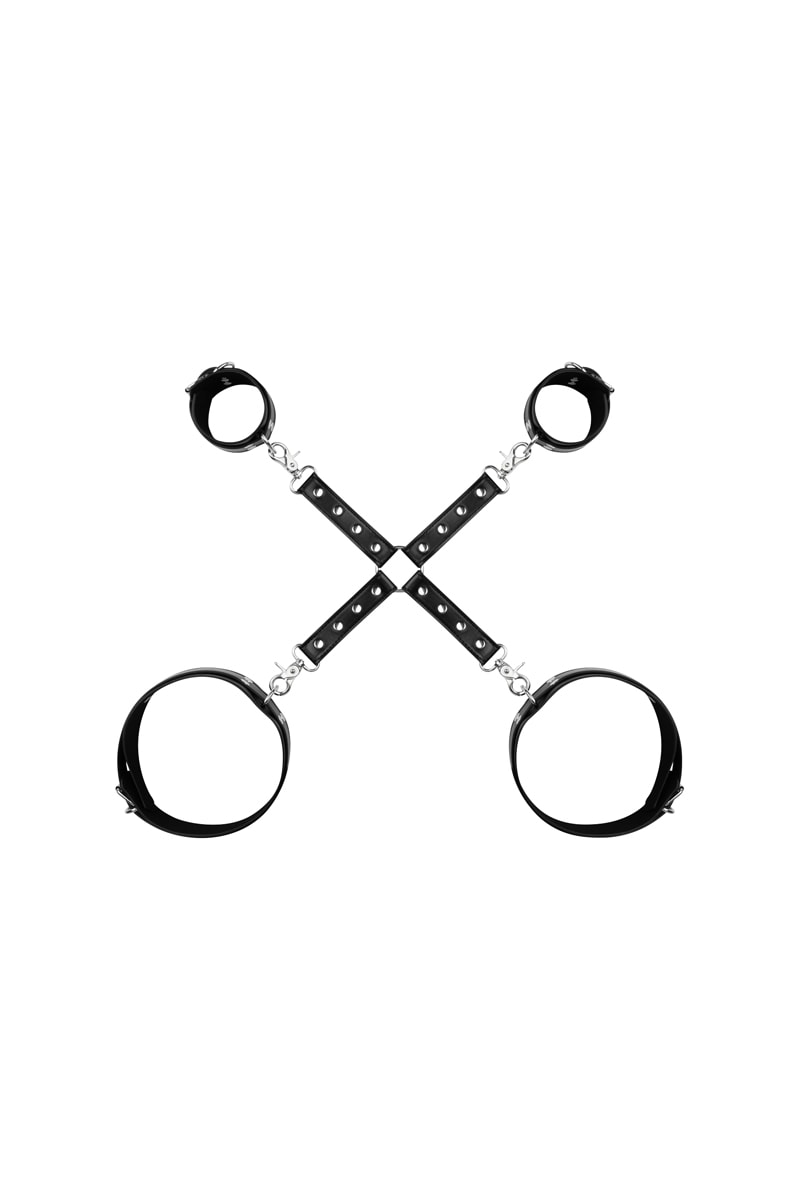 Ce set comprend des menottes pour les mains et les jambes qui relient les jambes et les bras, laissant votre partenaire incapable de bouger les mains.