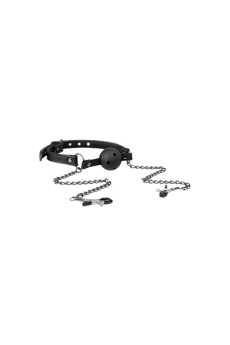 Allez jusqu'au bout avec ce bâillon à boule avec pinces à tétons de la collection EasyToys Fetish.