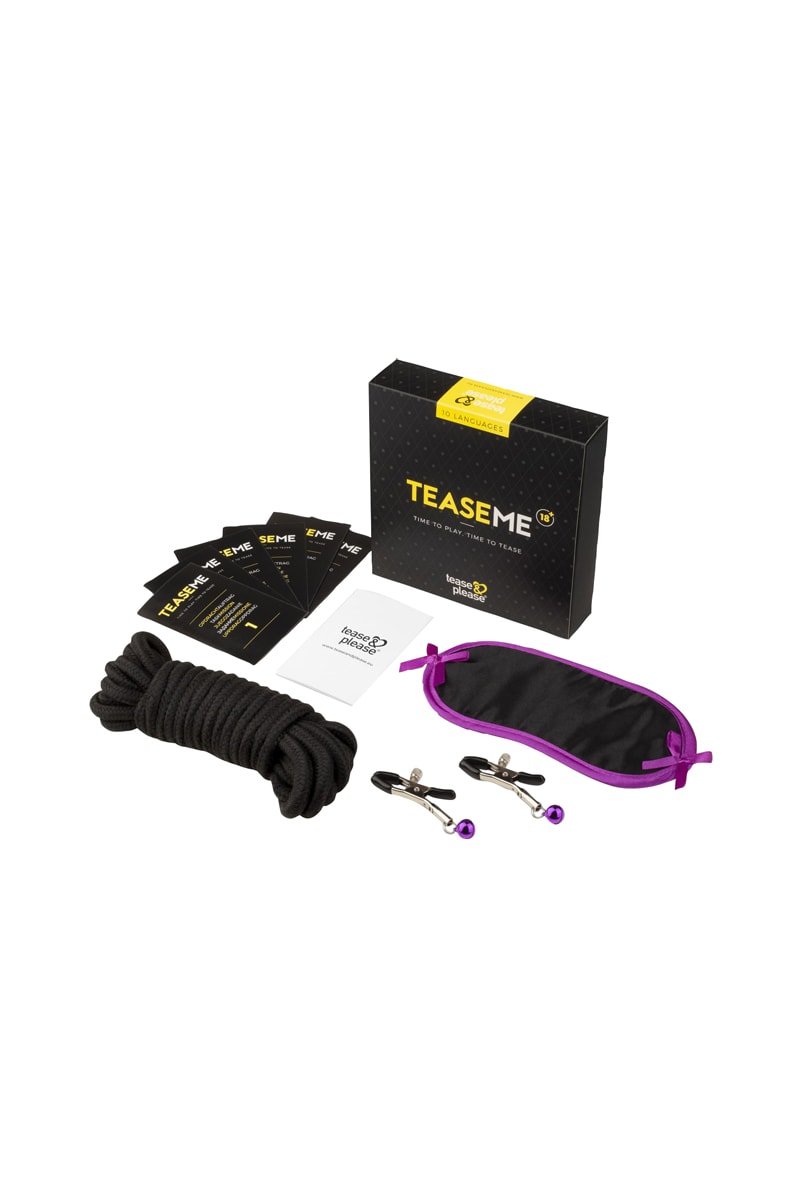 Il propose des tâches à réaliser, en utilisant des accessoires comme un masque, une corde de bondage et des pinces à tétons ajustables, pour stimuler les sens et encourager l'expérimentation ludique du pouvoir et de la soumission.