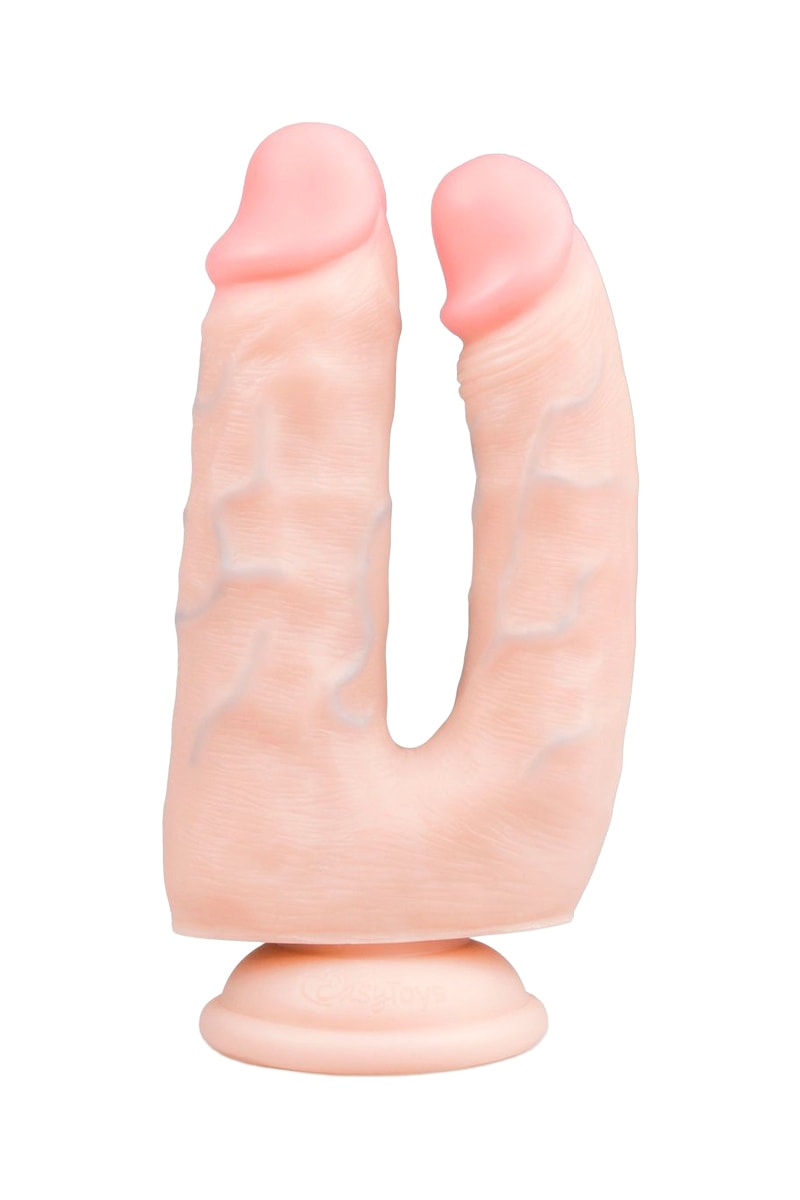 Double godemichet réaliste avec ventouse en silicone.
