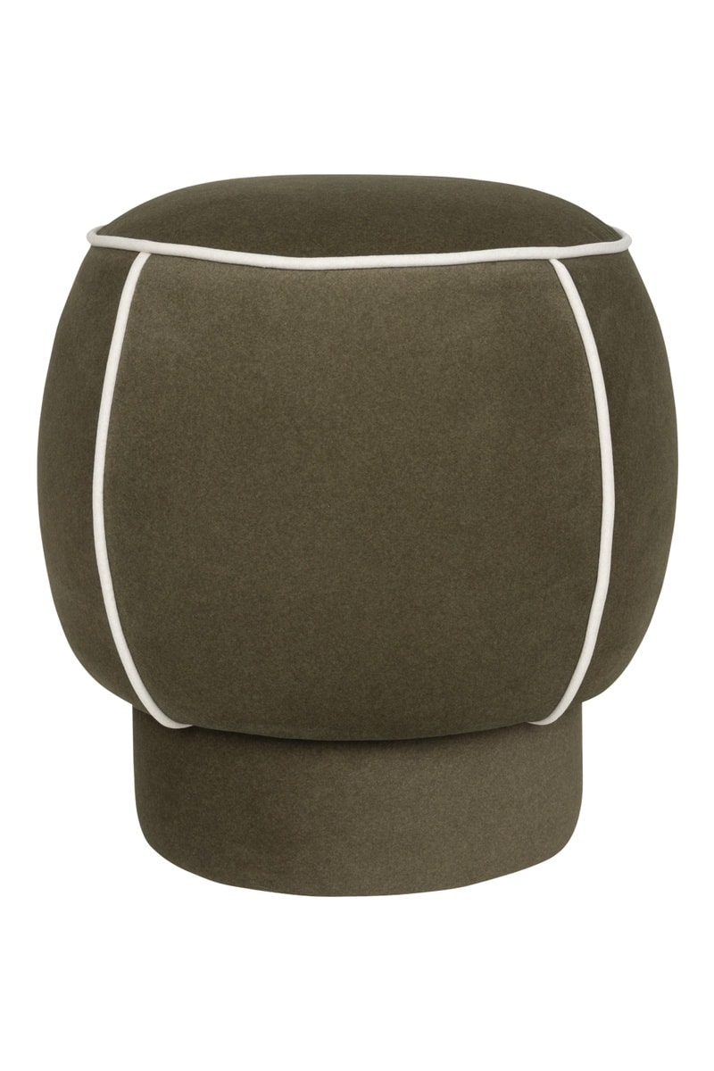 Pouf en bois Marina - Kaki - En tissu doux