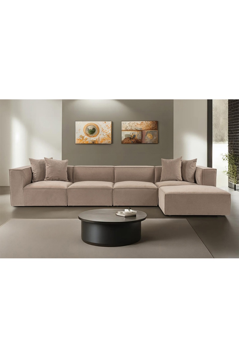 Canapé angle droit Sora - Beige - 4 à 5 places - Revêtement en lin
