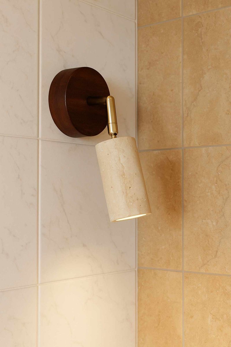 Applique murale en bois et travertin - Beige - 10 W