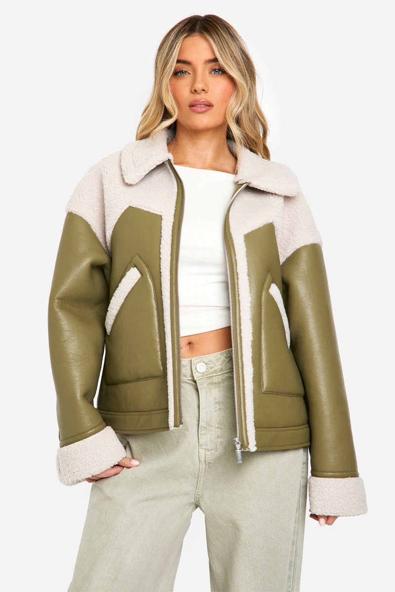 Fourrure synthétique à l’encolure, sur les manches, devant et au dos.