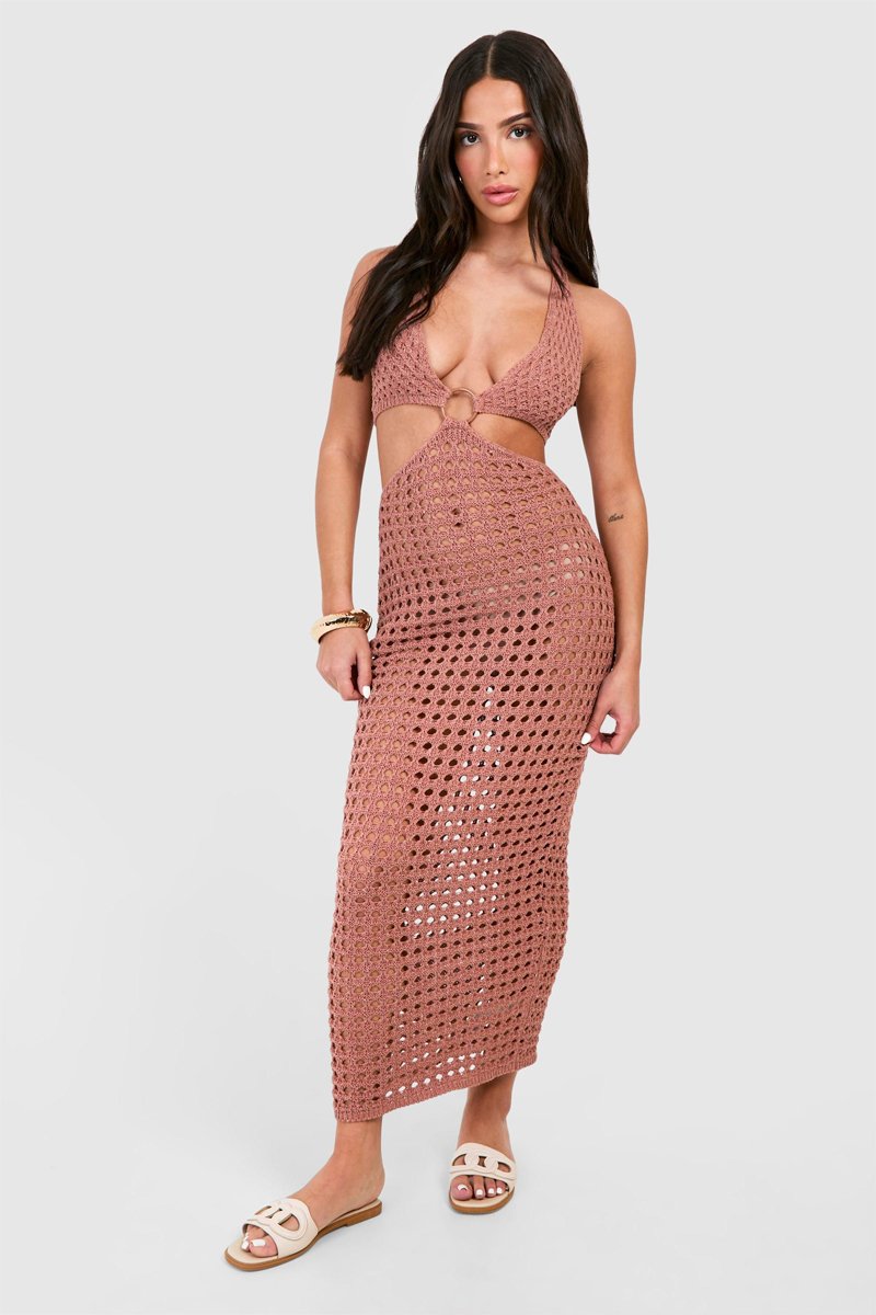 Robe longue en crochet.