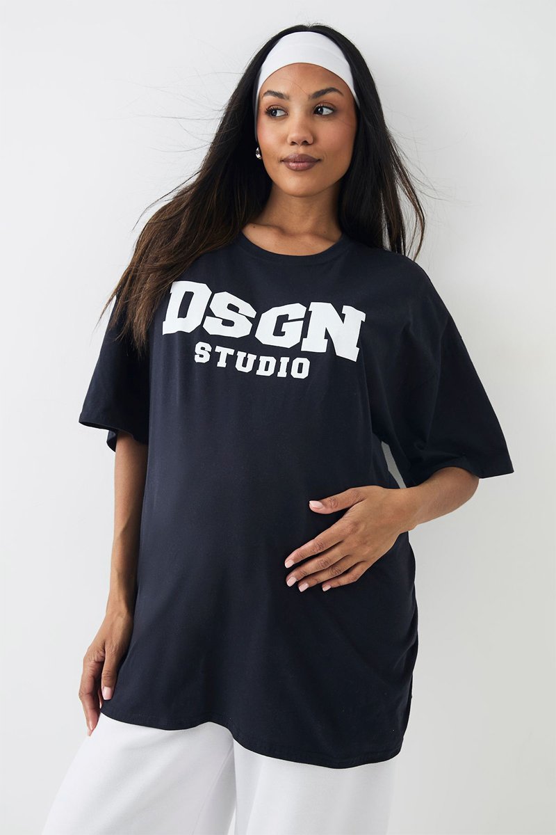 T-shirt et pantalon taille haute de maternité - Bleu marine