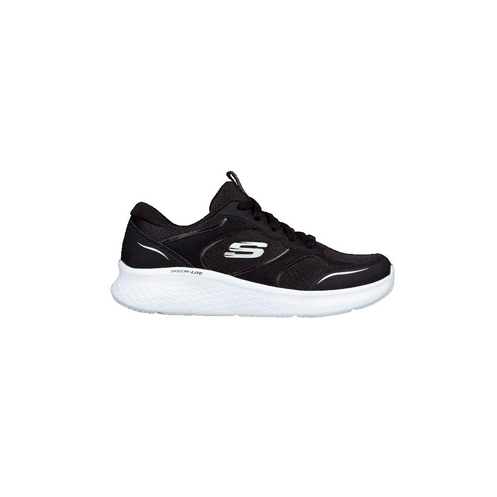 Sneakers élégantes Skechers 149993-BKW pour femme, confortables et stylées. Design moderne noir, parfaites pour toutes occasions, automne-hiver et printemps-été.