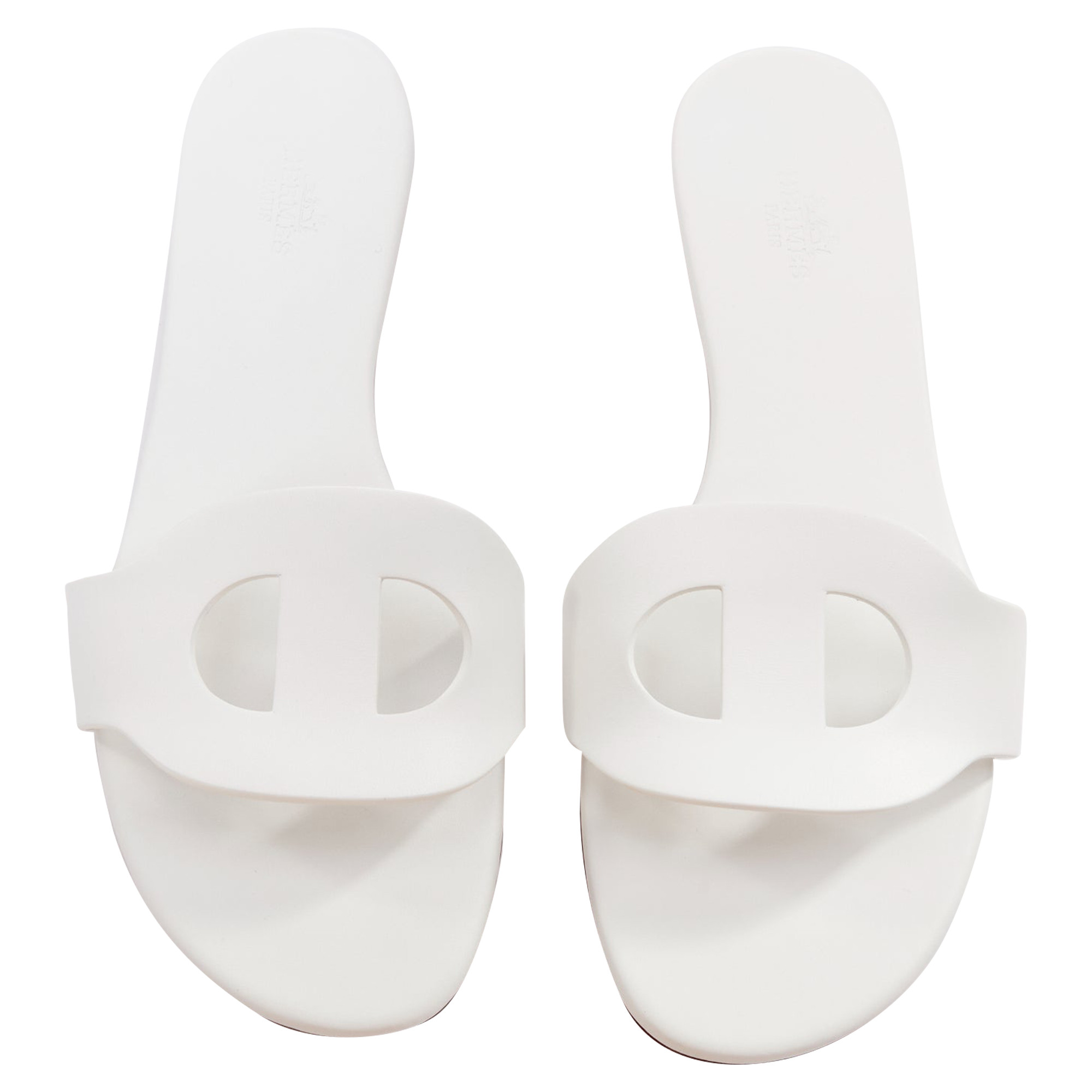 HERMES Chaussons sandales plates découpées en cuir blanc Lisboa Chaîne d'Ancre EU37.5