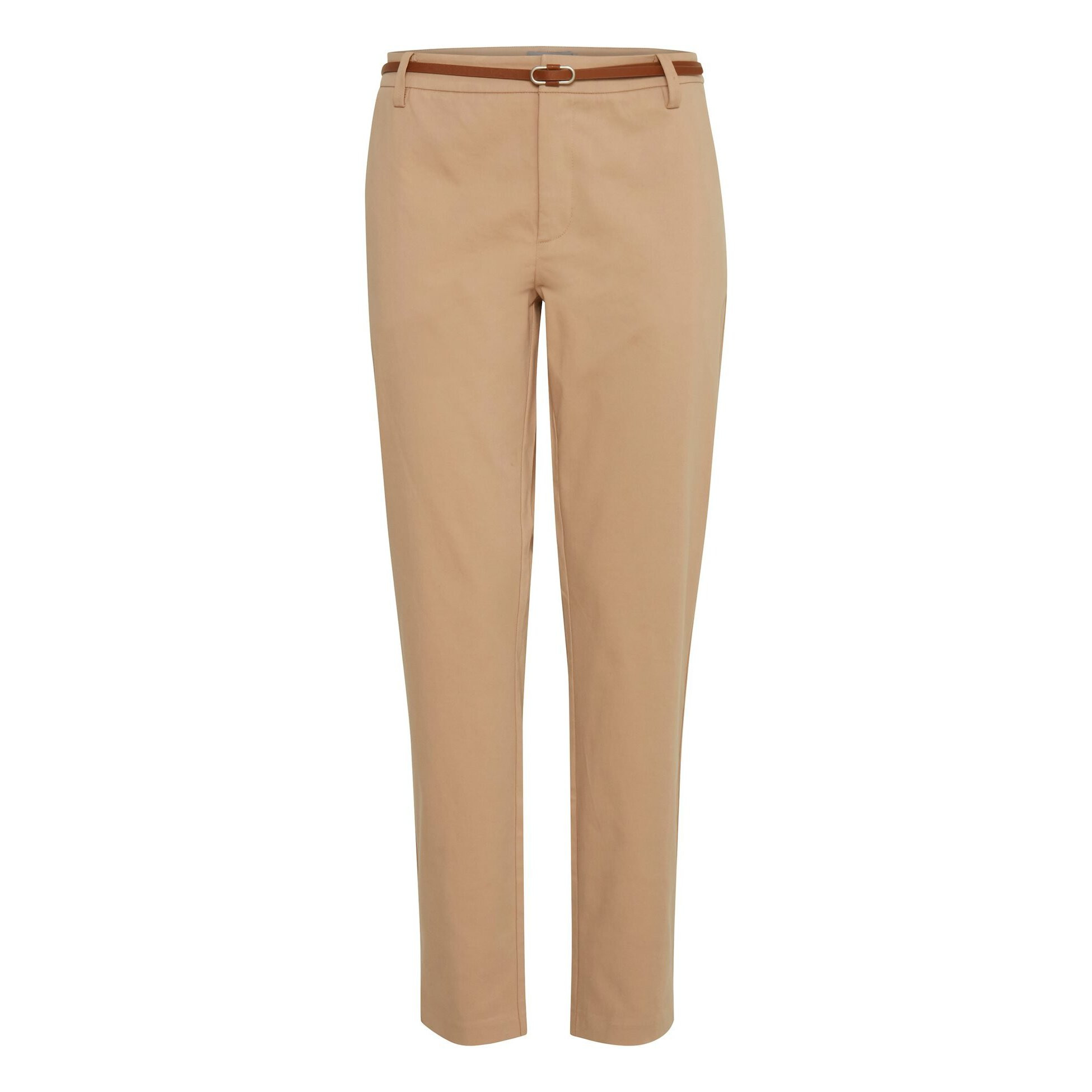 Pantalon femme b.young Days Cigaret. - Pantalon cigarette à la cheville avec ceinture en cuir synthétique. - Fermeture zippée, deux marches en pente à l'avant et poches décoratives à l'arrière. - Coupe régulière - Taille normale - Longueur de la cheville 98% coton ,2% élasthanne