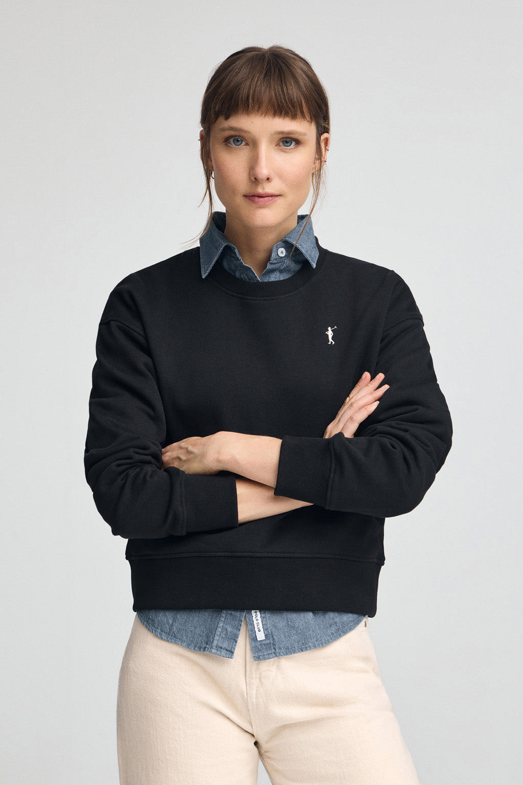 Sweat-shirt pour femme à la coupe boxy et col ras du cou. Confectionné en molleton de coton, c’est un vêtement confortable et polyvalent pour un usage quotidien.