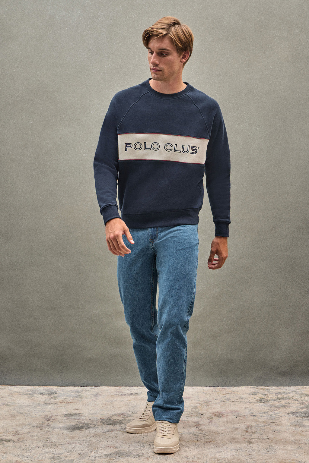 Sweat-shirt bleu marine à coupe décontractée, col ras du cou et logo Polo Club