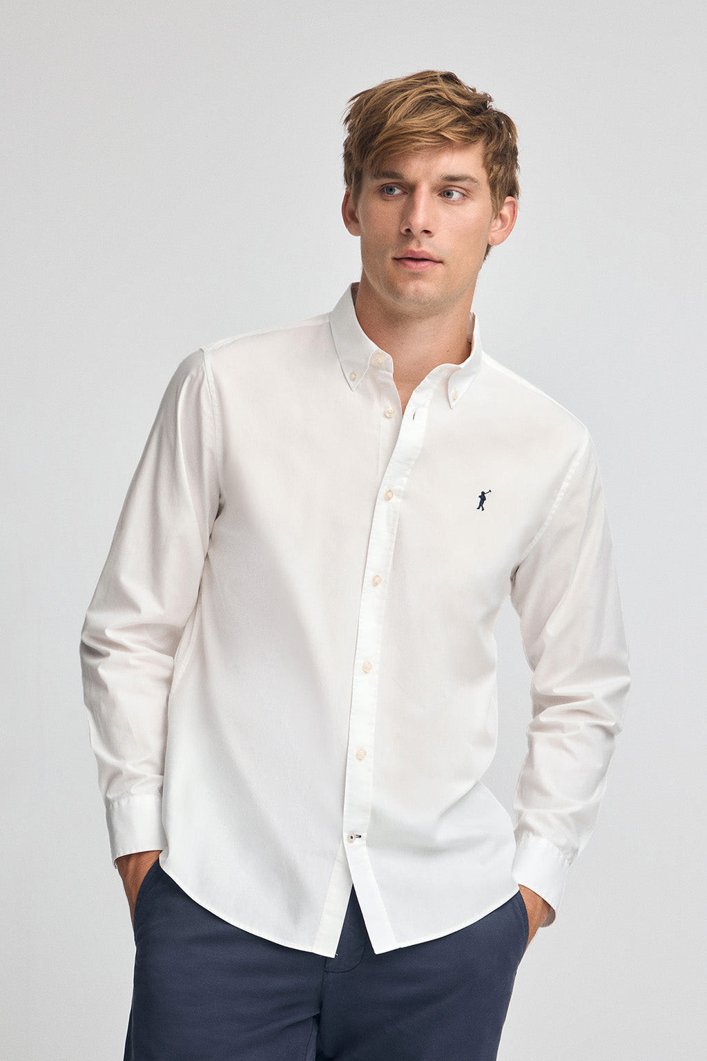 Chemise pour homme à coupe droite et col boutonné, confectionnée en popeline de coton. Vêtement confortable et léger, parfait pour le quotidien.