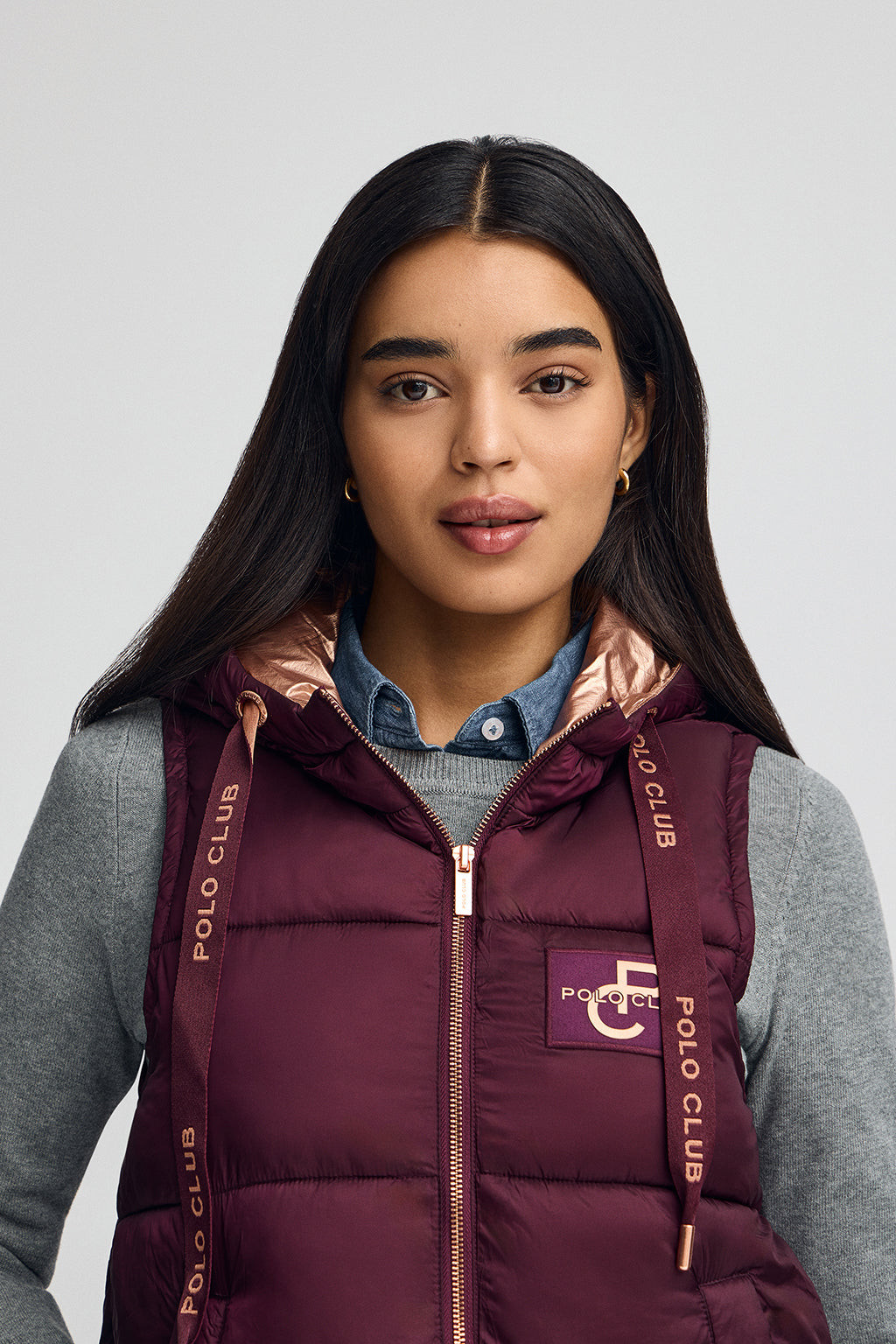 Veste sans manches matelassée bordeaux avec logo Polo Club