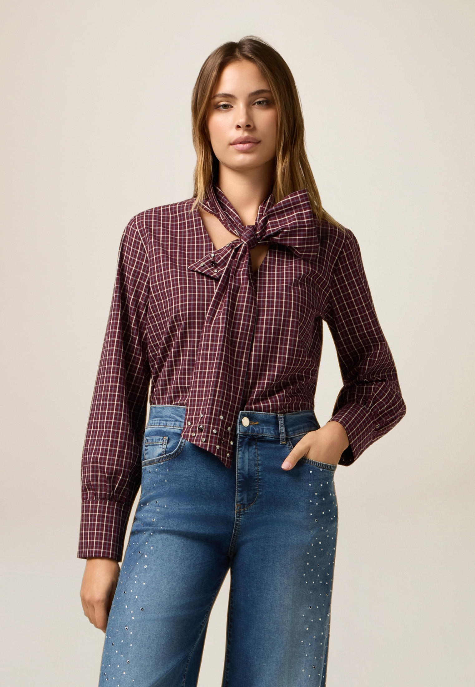 Chemise à carreaux ; coupe régulière avec encolure en V et fermeture à boutons sur le devant ; écharpe à nouer, ornée de chatons en cristal ; FABRIQUÉ EN ITALIE.