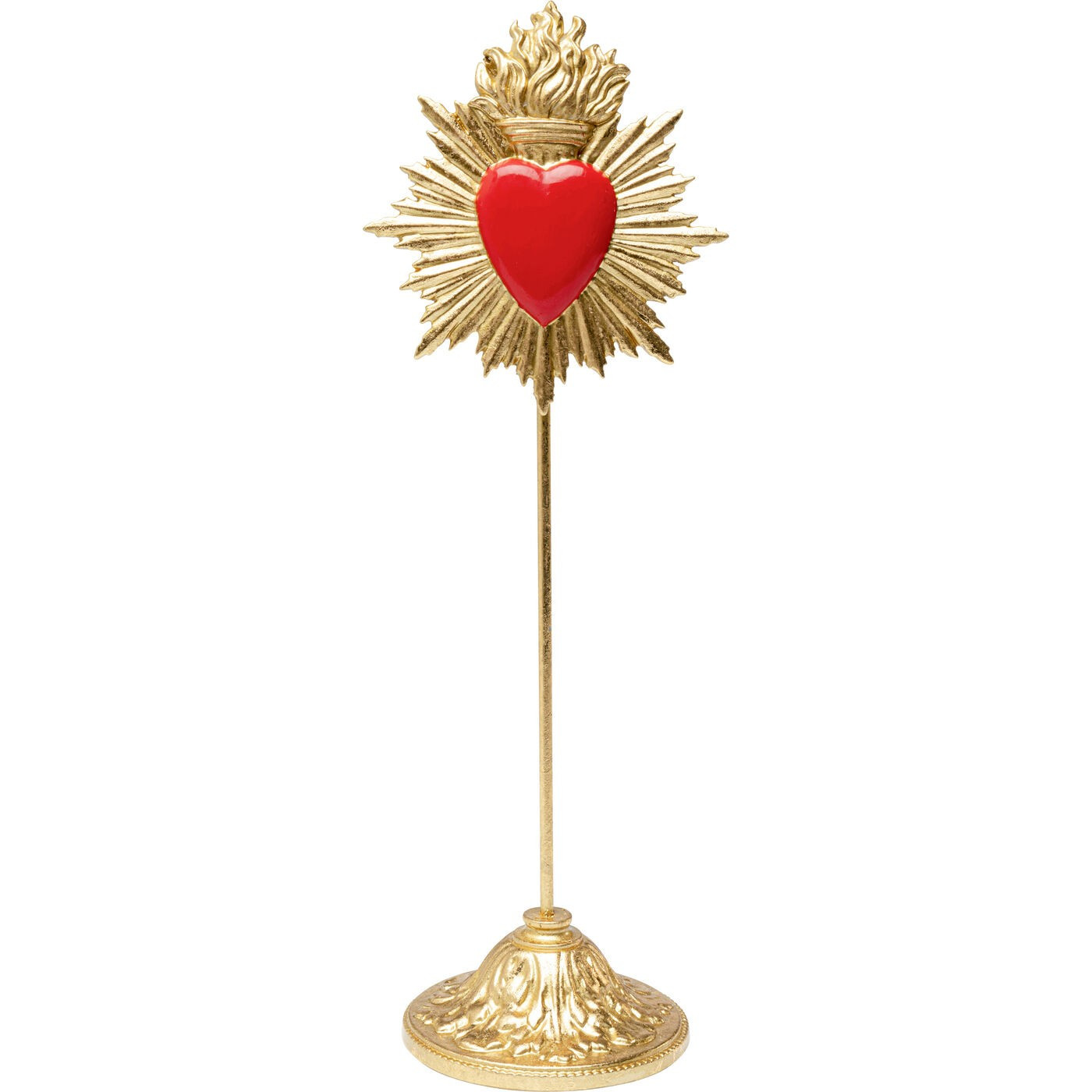 • Ce cœur rouge, serti dans un éclat doré et monté sur un socle élégant, incarne à la fois passion et spiritualité.