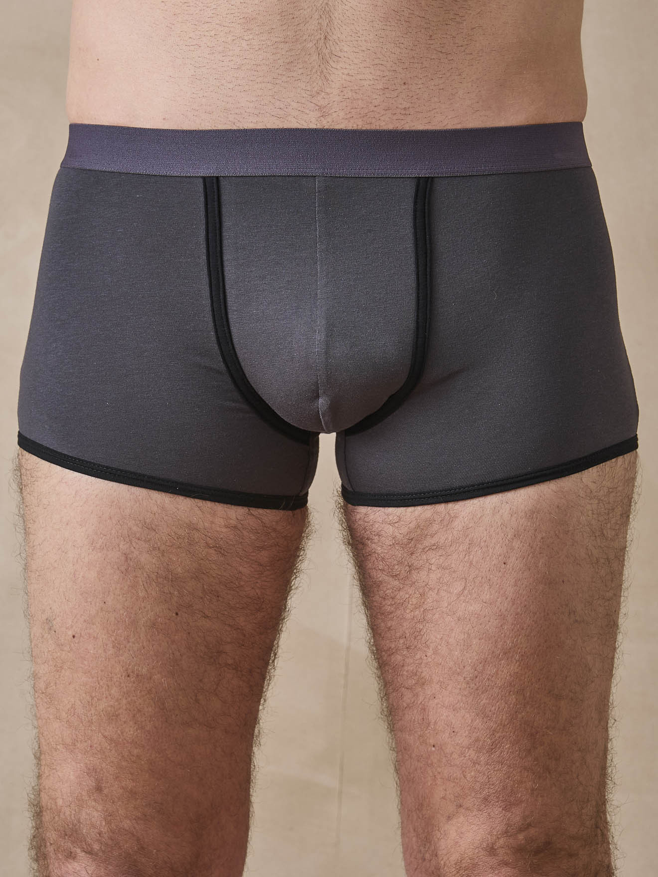 - 2 gris foncé + 2 noirs - Large élastique taille avec rayure contrastante - Gousset contrastant et fond doublés COMPOSITION 95% coton, 5% élasthanne. COTON MAJORITAIRE Lavage normal 30° Repassage à temp. faible 110°C Nettoyage à sec interdit Séchage tambour interdit