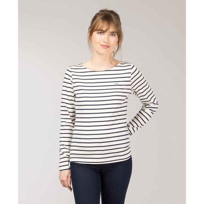 Marinière manches longues grège/bleu marine Femme - Terre de Marins