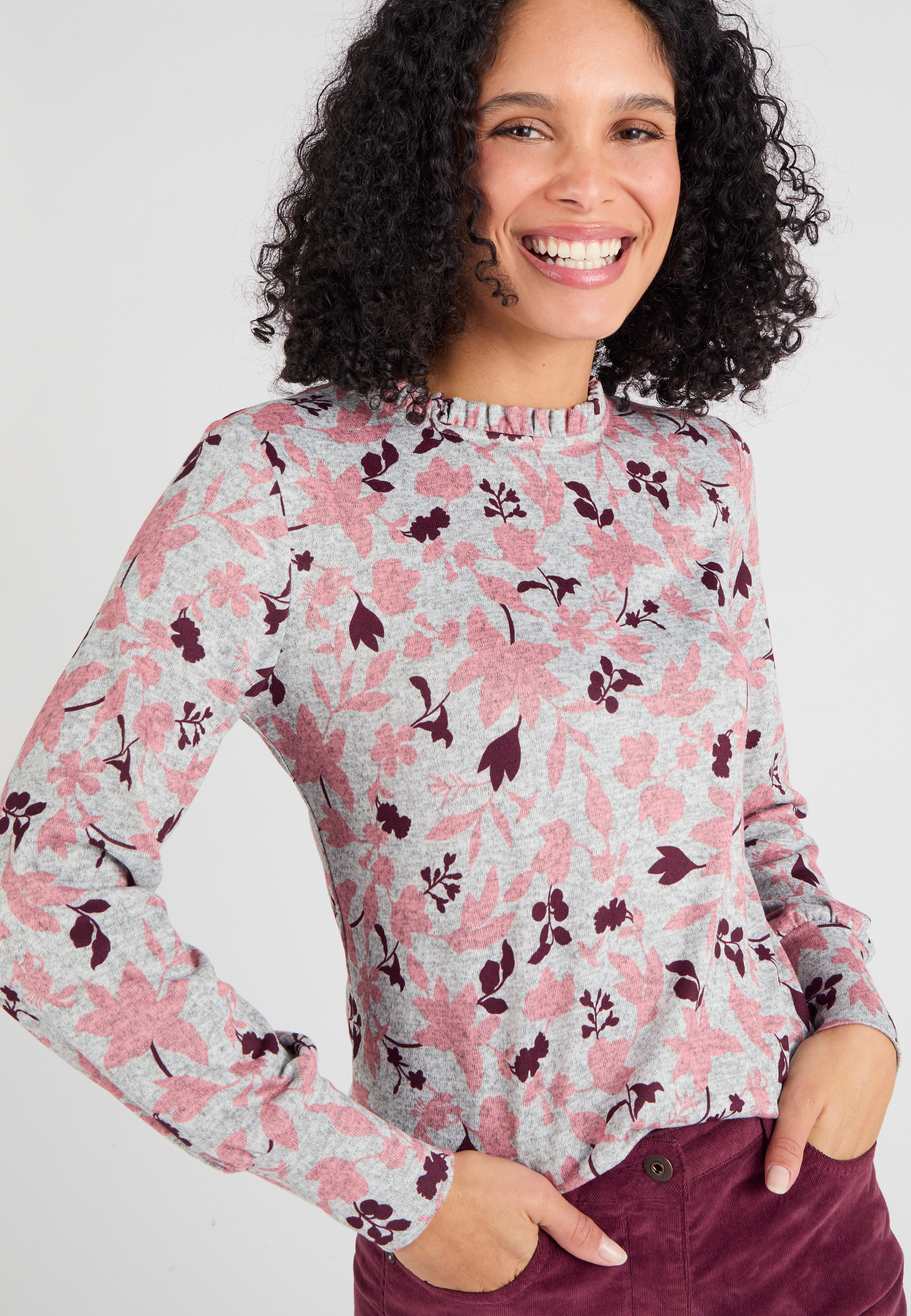 Délicatesse d'un petit volant habillant l'encolure ronde de ce tee-shirt imprimé : un détail qui le fait entrer dans la catégorie des T-shirts raffinés ! Son style est également affirmé par de larges poignets resserrés, créant un effet légèrement bouffant. Sa maille chaude et douillette est fabriquée à 95% à partir de polyester recyclé. Un peu d'élasthanne lui donne cette extensibilité qui vous rend libre de vos mouvements. Manches longues. Longueur de ce t-shirt d'hiver : 61 cm environ. La mannequin mesure 176 cm et porte une taille 38/40.
