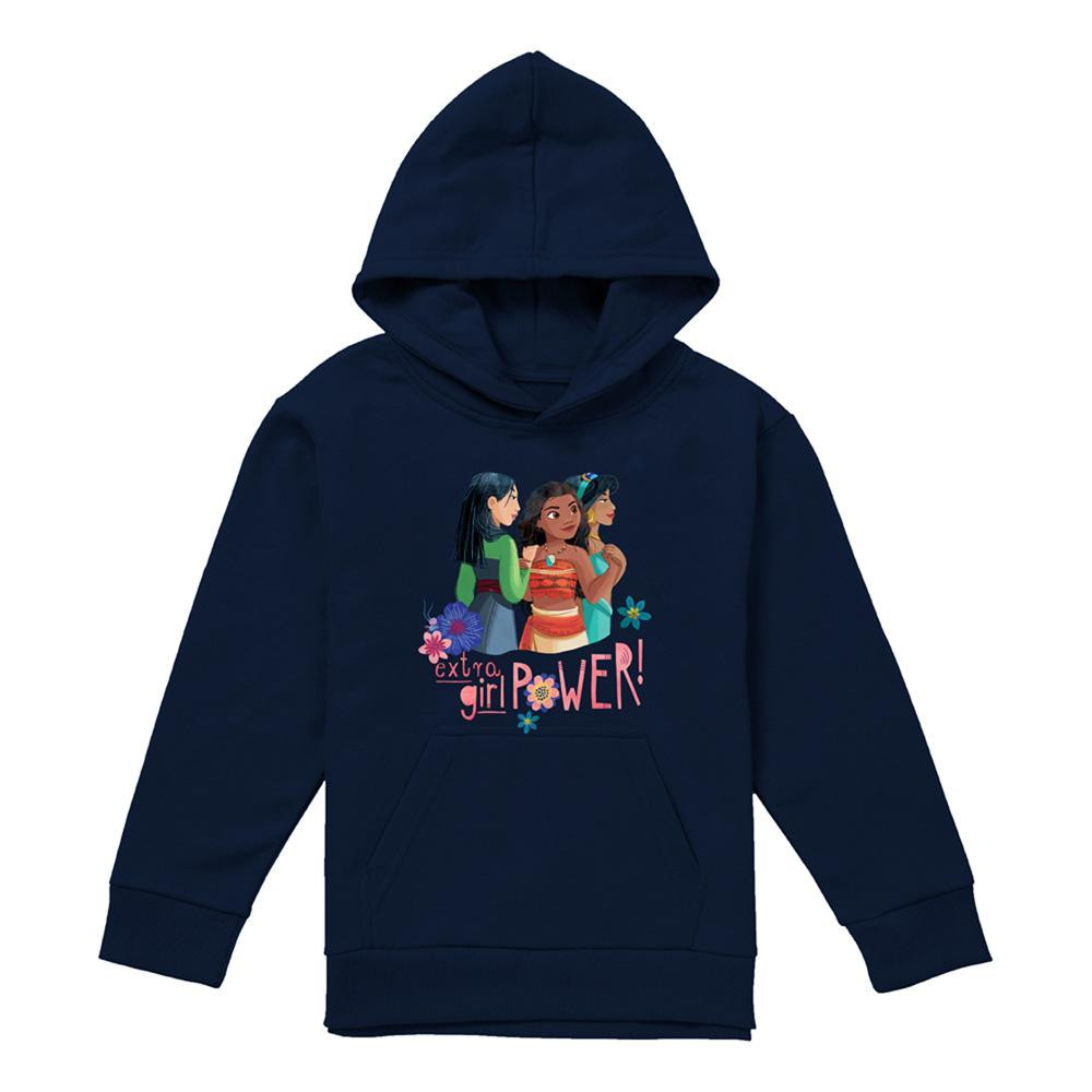 Disney Princess - Sweat à capuche motif Mulan, Vaiana et Jasmine EXTRA GIRL POWER! - Enfant (Bleu marine)
