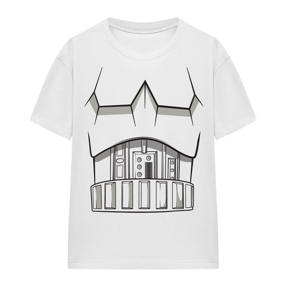 Personnages: Stormtrooper. Design/motif: Costume, Imprimé. Coupe: Régulière. Encolure: Col ras-du-cou. Type de manches: Manches courtes. Matériau: Mi-chaud, Prérétréci. Ourlet: Droit. Caractéristiques des matériaux: Respirant. Produit sous licence officielle. Composition: 100% Coton filé à l´anneau. S: 91,5 cm. M: 99 cm. L: 106,5 cm. XL: 117 cm. 2XL: 127 cm.