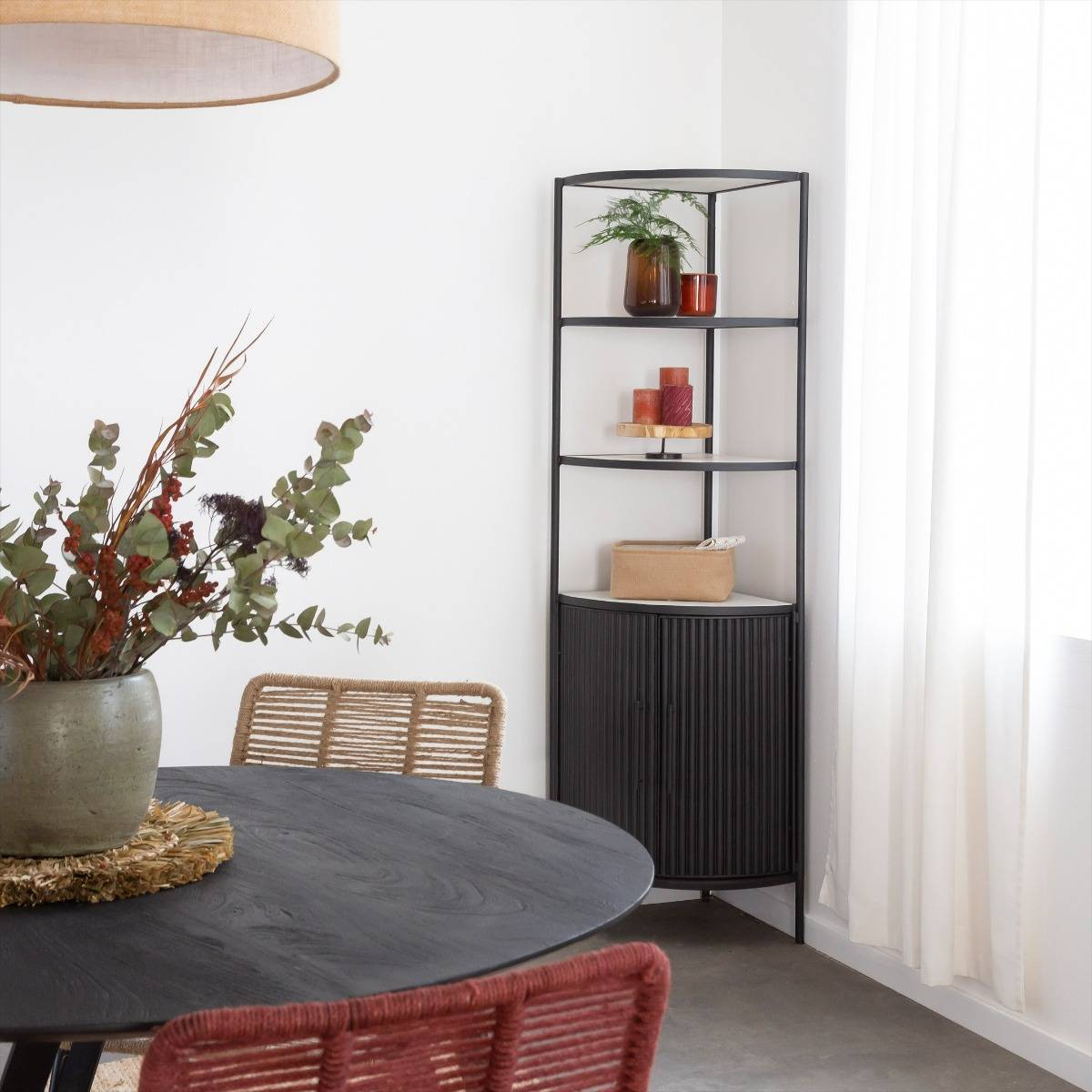 Cette étagère d'angle est parfaite pour habiller un espace innocupé et restreint. Elle a été réalisée à partir de matériaux de qualité à savoir du métal et du marbre blanc. Ce meuble vous permettra de stocker et de ranger tout en apportant une touche déco indéniable dans votre intérieur.