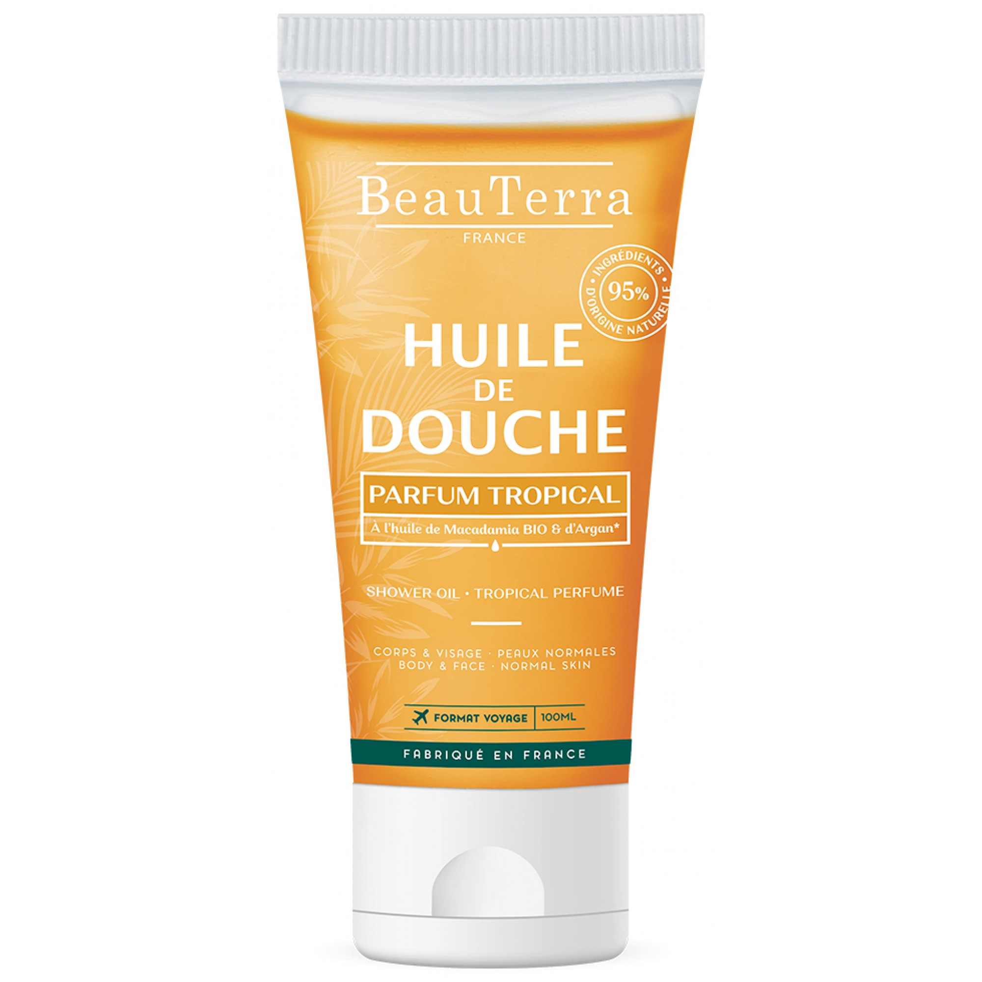 BeauTerra Huile de Douche Tropical de 100 ML est une huile de douche ultra-sensorielle pour le corps et le visage.Enrichi en huile de Macadamia Bio et d'Argan hydrosoluble, elle nettoie onctueusement la peau tout en lui apportant une fragrance ensoleillante d'ylang ylang et de fleur de frangipanier. pH physiologique.Convient parfaitement aux besoins des peaux normales. 95% d'ingrédients d'origine naturelle. Vegan. Fabriqué en France.
