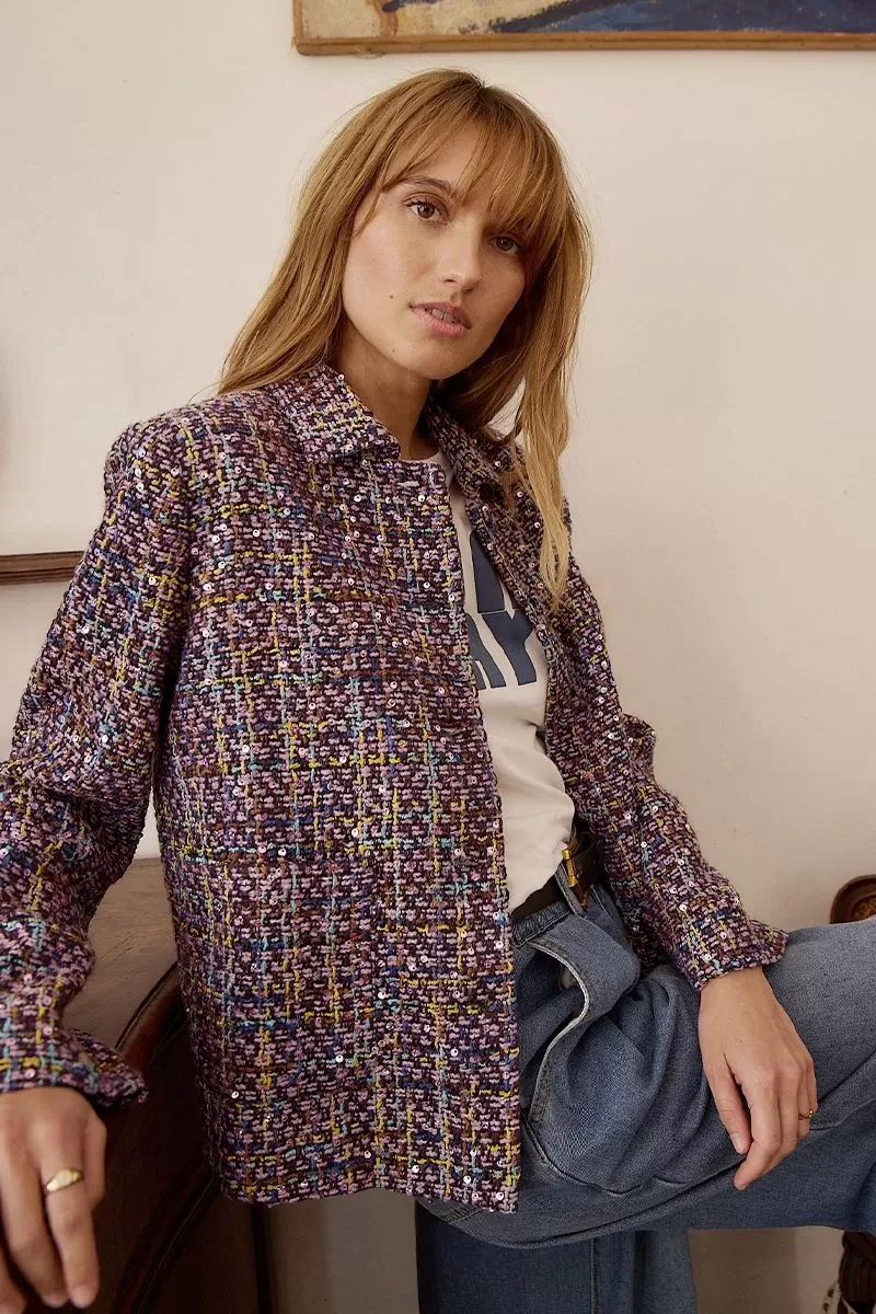 Molly Bracken - Veste courte en tweed, parsemée de strass - T1846DH - Multicolore - Femme