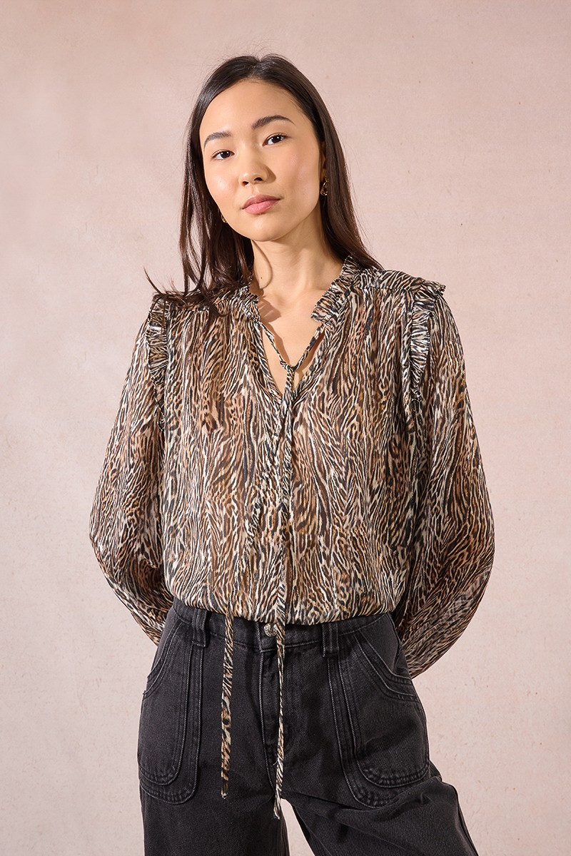 Molly Bracken - Blouse en voile imprimé animalier - T2057DH - Camel - Femme