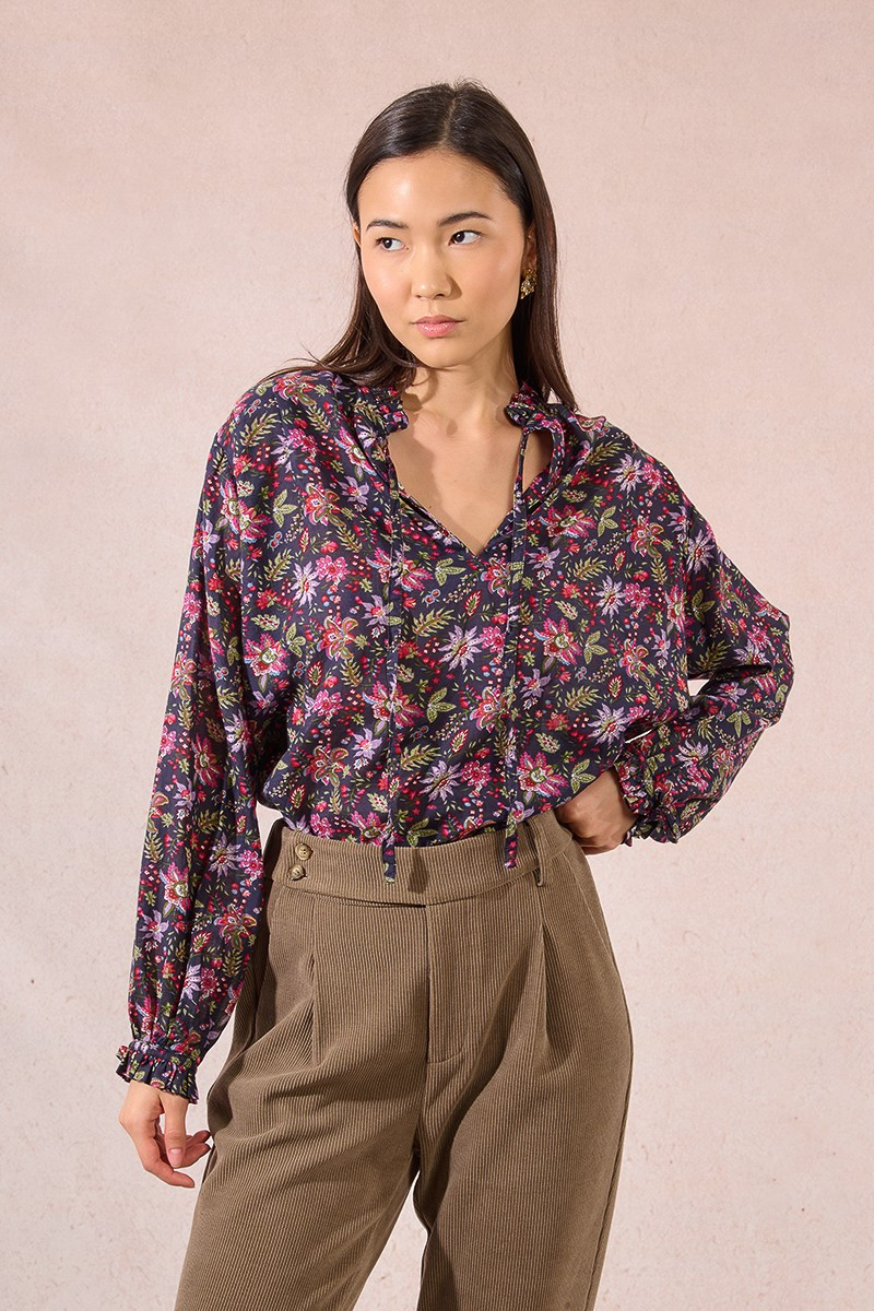 Molly Bracken - Blouse semi-transparente, imprimé fleuri - ZR150ADN - Noir - Femme