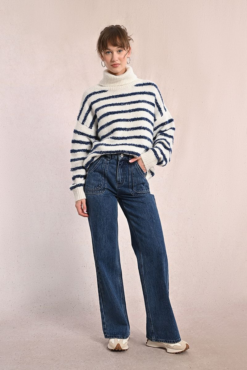 Molly Bracken - Jean large surpiqué - ER137ADH - Bleu Denim - Femme