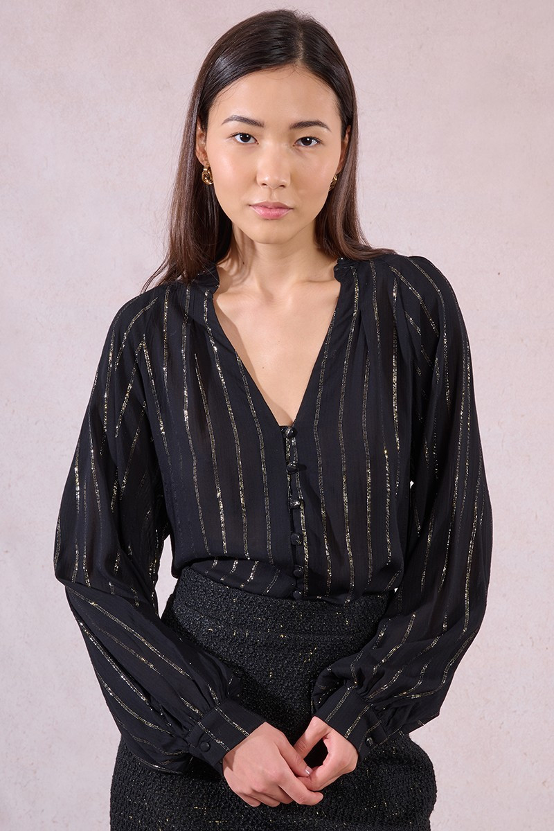 Molly Bracken - Chemise rayée et irisée - LA1767DH - Noir - Femme