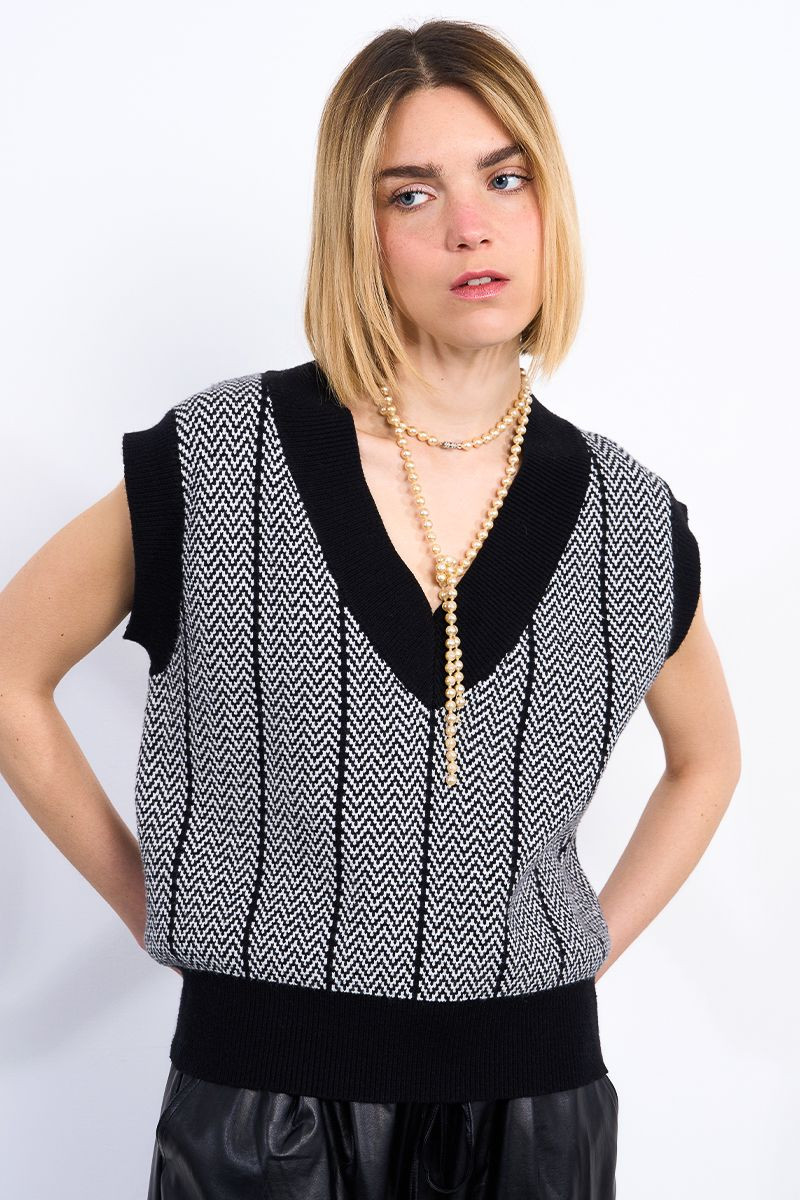 Lili Sidonio - Pull sans manches effet jacquard - ELF901DN - Noir - Femme