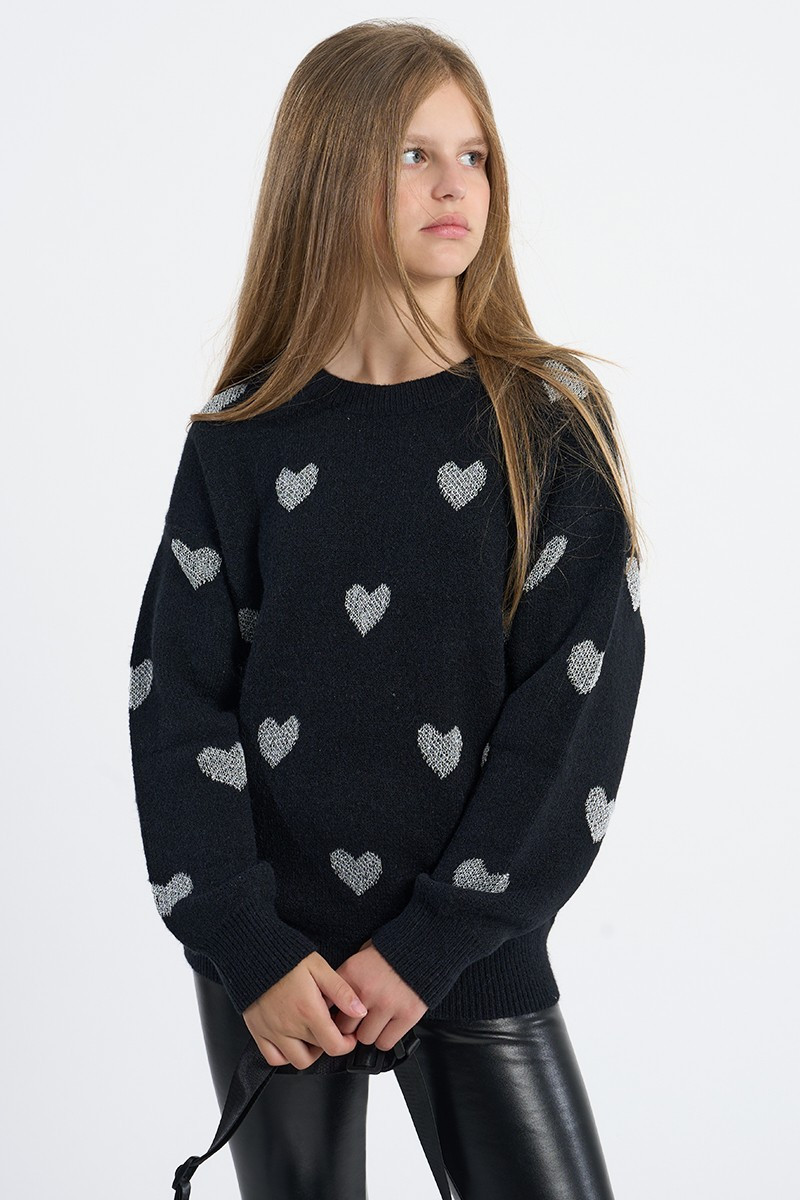 Molly Bracken Girl - Pull en maille avec cœurs - MMLA1774DN - Noir - Fille