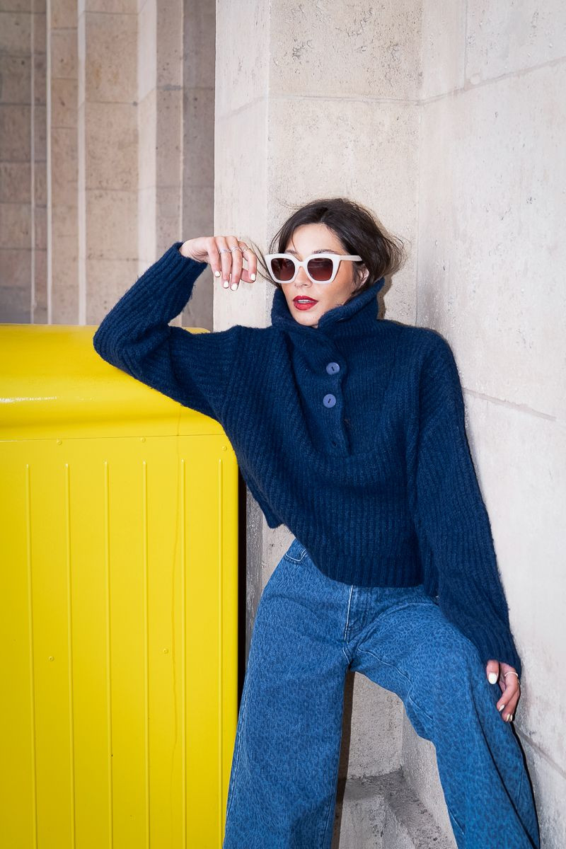 Lili Sidonio - Pull camionneur boutonné - ML68DH - Bleu - Femme