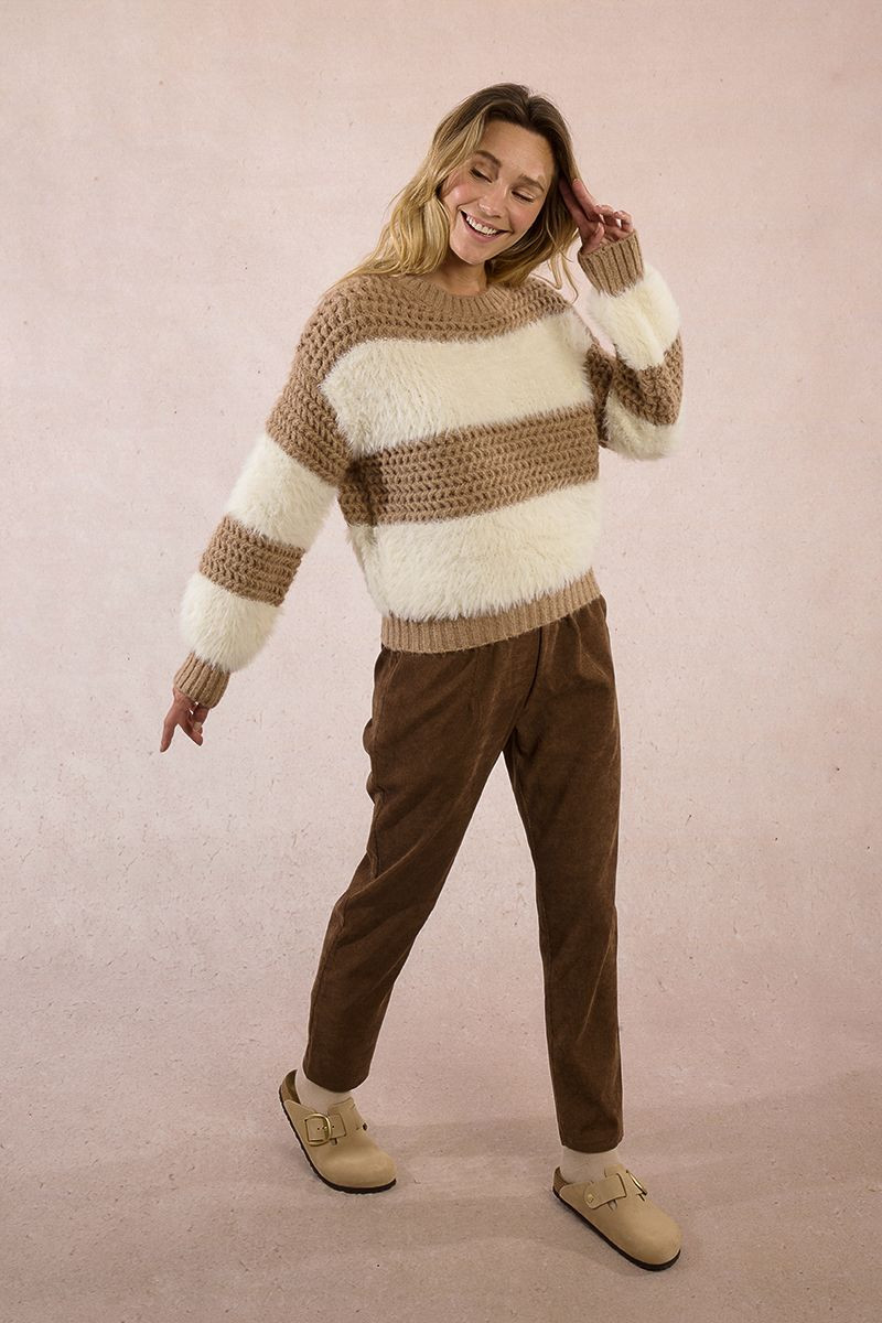 Molly Bracken - Pull rayé en bi-matière - LA1807DH - Écru / Beige - Femme